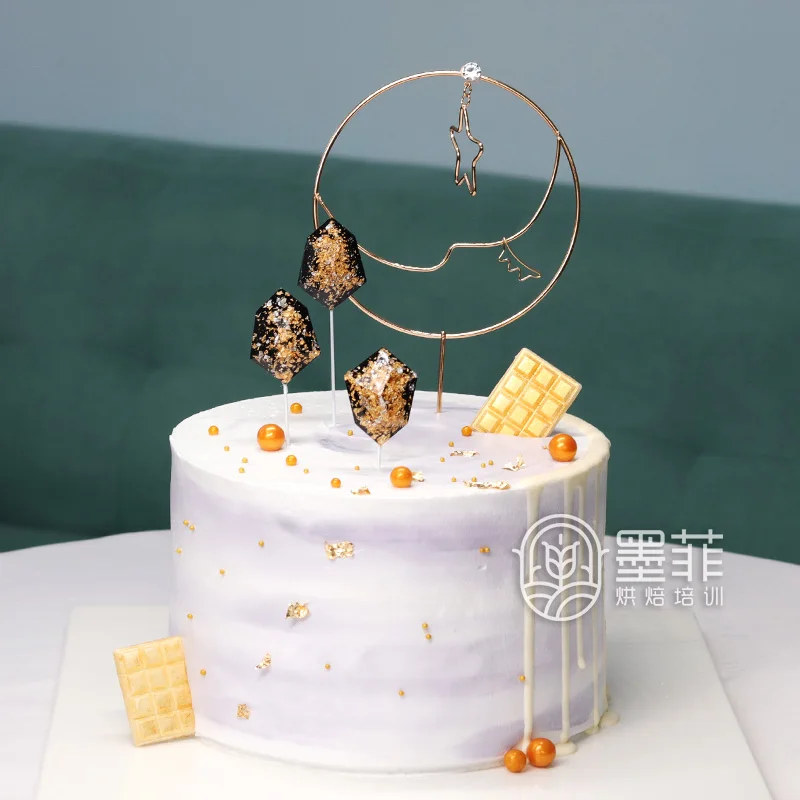 Qixi Festival Baked Cake Black Amber Flag Ins Sparkling Golden Moon Star Card Arrangement On Valentine S Day Cake Decorating Supplies Aliexpress